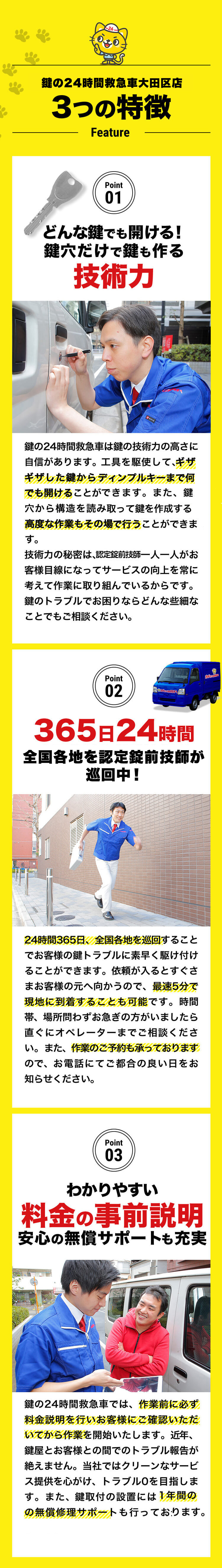 大田区の「カギの出張24時間」は、羽田空港周辺を含む広範なエリアで鍵のトラブルに対応。地元に根ざしたサービスで、安心価格と明確な説明を心がけています。大田区で鍵の緊急事態には、当店の迅速で信頼できるサービスをご利用ください。