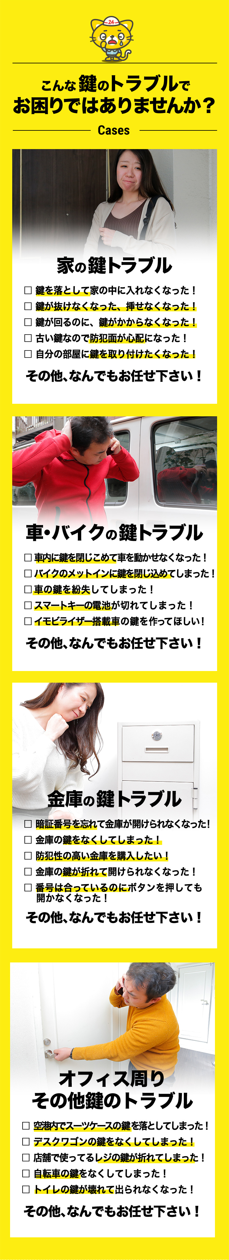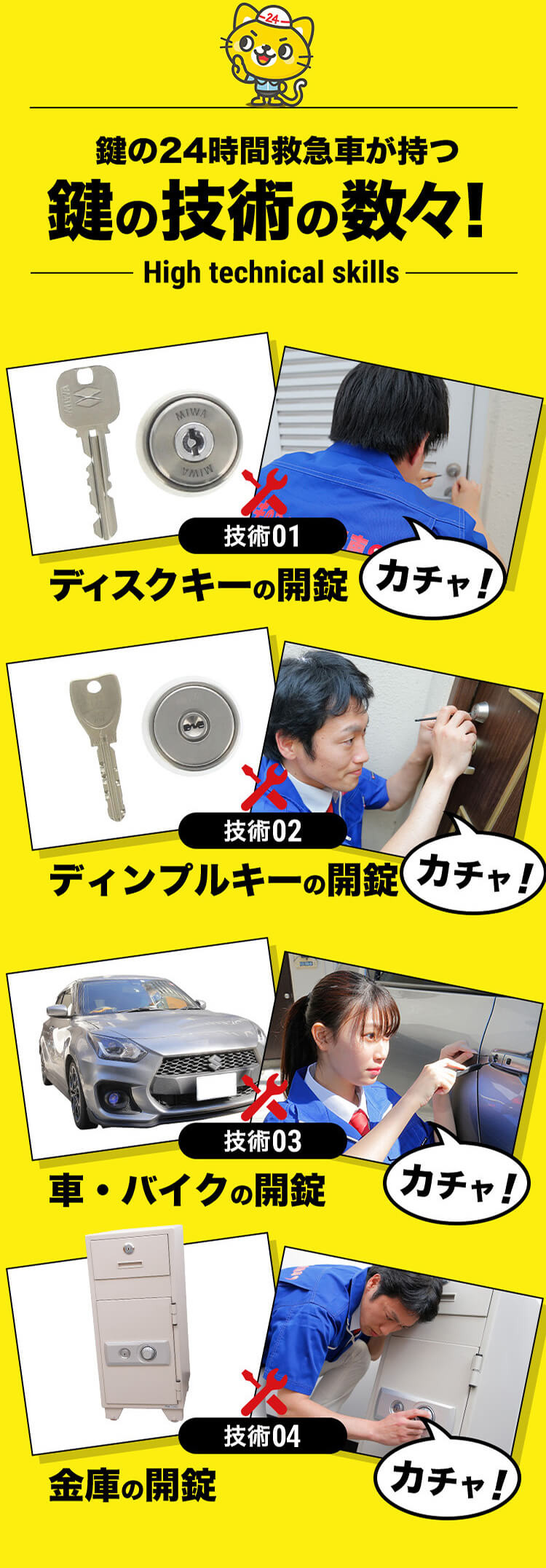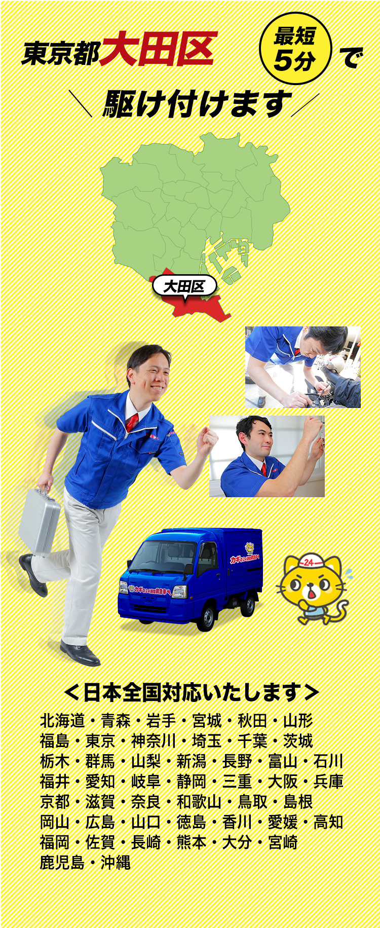 大田区の「カギの出張24時間」は、羽田空港周辺を含む広範なエリアで鍵のトラブルに対応。地元に根ざしたサービスで、安心価格と明確な説明を心がけています。大田区で鍵の緊急事態には、当店の迅速で信頼できるサービスをご利用ください。